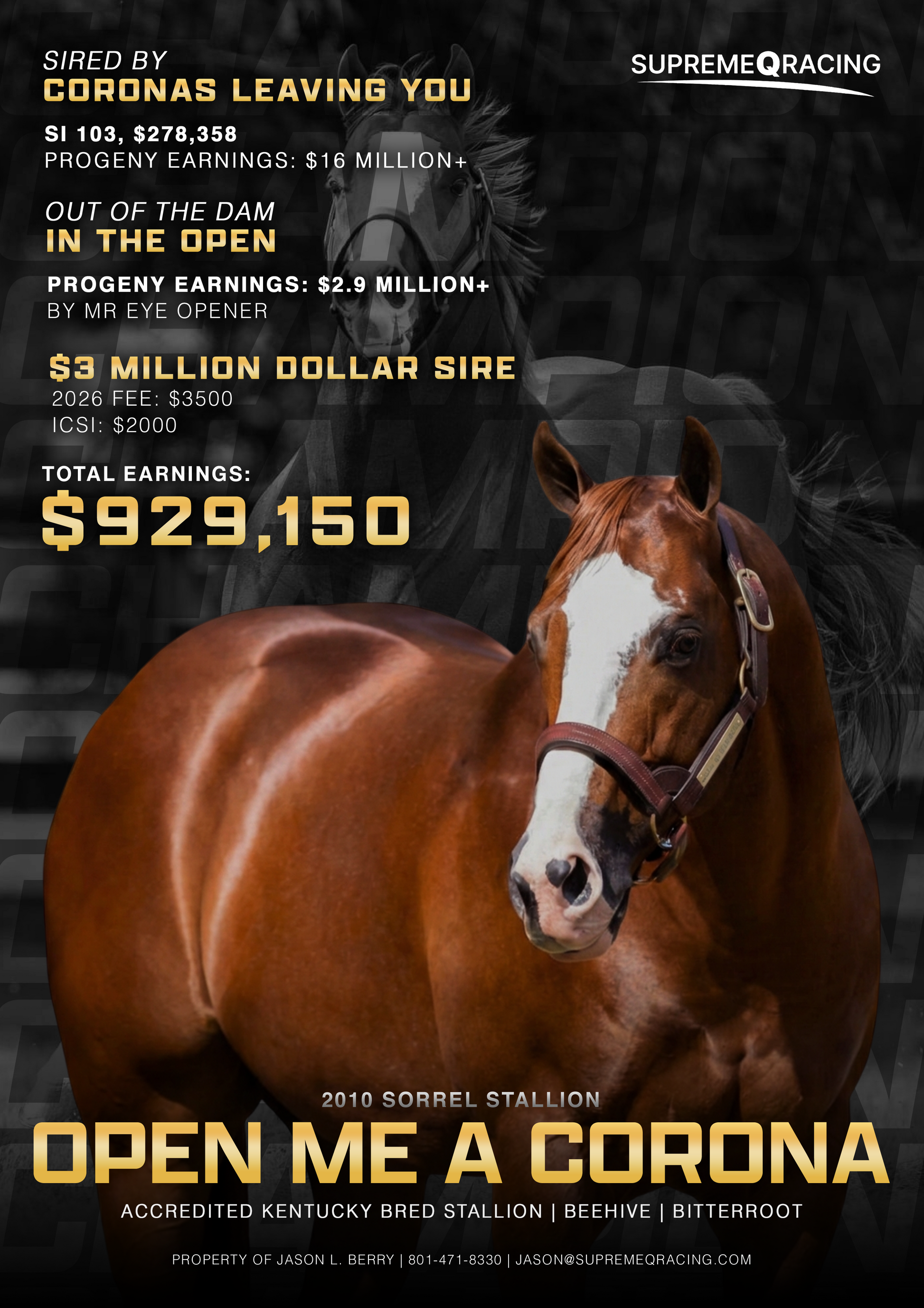 Please Contact Stallion Manager: Jason Berry (801)471-8330