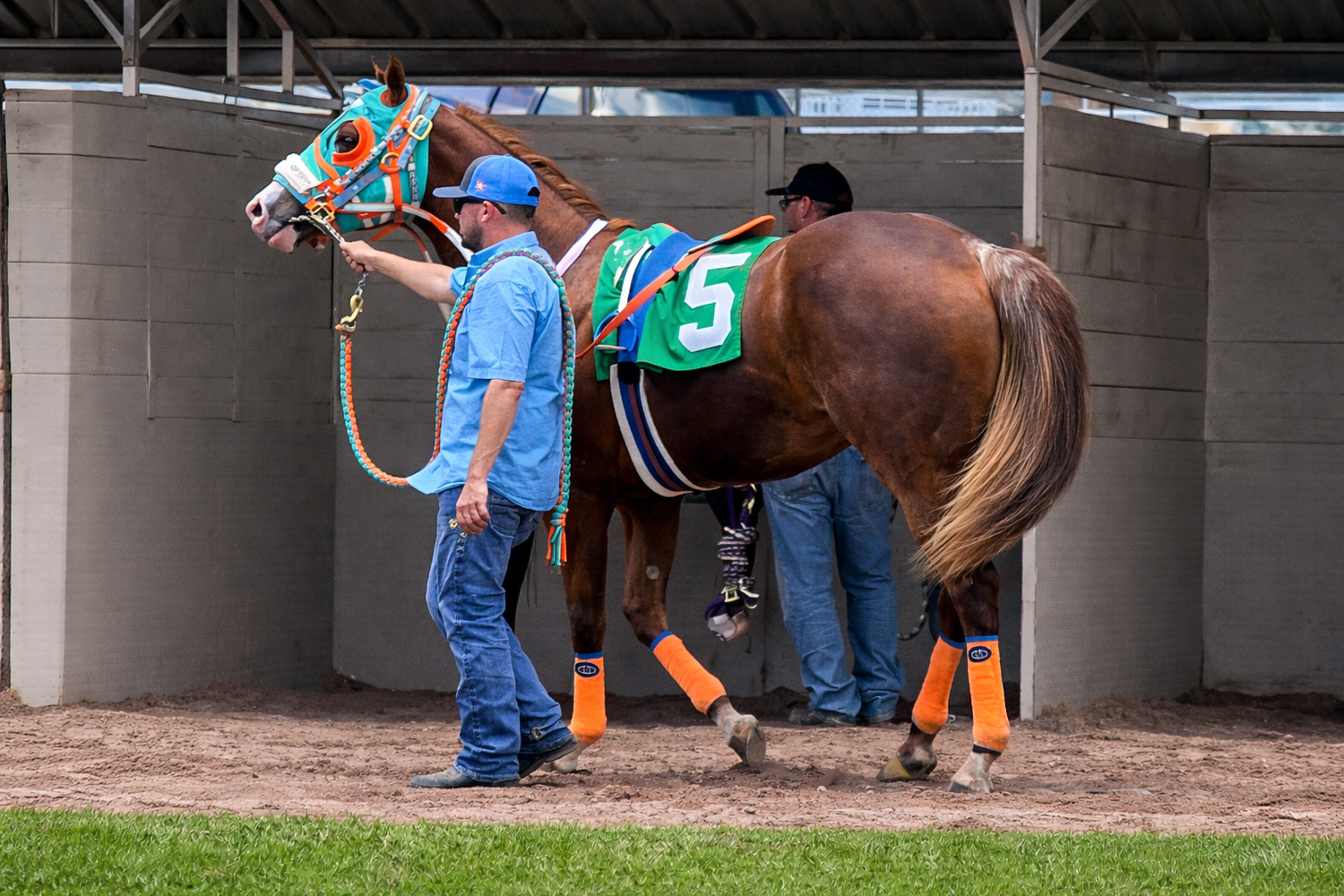 One Cool Corona (#7), under jockey J.R. Ramirez, winning the $448,771 LQHBA Sale Futurity(RG1) on September 2, 2023
