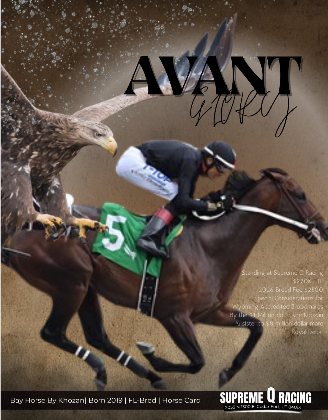 📞 Book your mares today with Supreme Q Racing and be part of Avant Glory’s first foal crop!